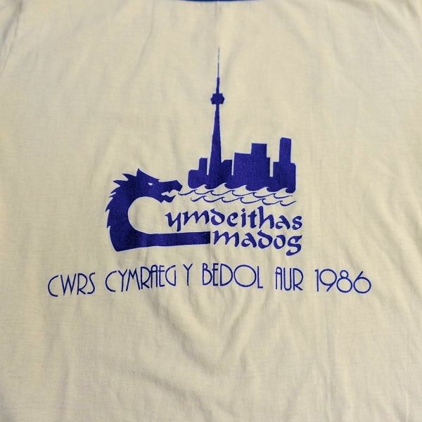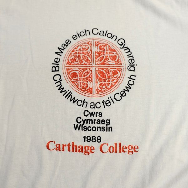 Since at least the 1985 Cwrs Cymraeg in Pella, Iowa, students have had an option to purchase an official cwrs t-shirt. Each of these t-shirts then gives an indication of the flavour of each cwrs. With that in mind, here is a history of Cwrs Cymraeg through its t-shirts.